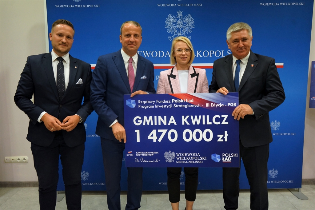 Kolejne samorządy z Wielkopolski otrzymały dziś dofinansowanie w ramach Rządowego Programu Inwestycji Strategicznych – Edycja III – PGR z rąk wojewody wielkopolskiego Michała Zielińskiego.