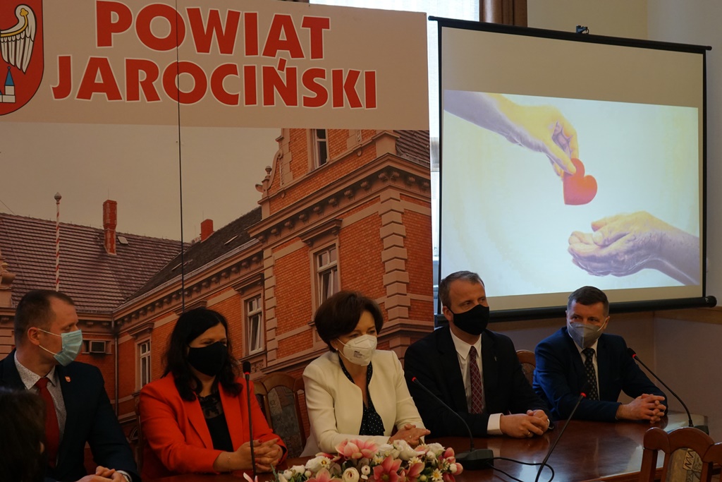 Z powiatu ostrowskiego minister Marlena Maląg oraz wojewoda Michał Zieliński udali się do Jarocina. W tamtejszym starostwie doszło do przekazania staroście jarocińskiemu Lidii Czechak umowy oraz promesy na utworzenie Domu Samotnej Matki w Dobieszczyźnie. - Cieszę się, że jesteśmy powiatem godnym zaufania. Zapewniam, że od razu po podpisaniu umowy bierzemy się do pracy, aby w krótkim czasie dom mógł zacząć funkcjonować. W domu tym zamieszkają kobiety w trudnej sytuacji życiowej z całej Wielkopolski. Nie będą to tylko mury, ale cała kompleksowa pomoc psychologiczna co nas niezmiernie cieszy - mówi starosta jarociński Lidia Czechak.