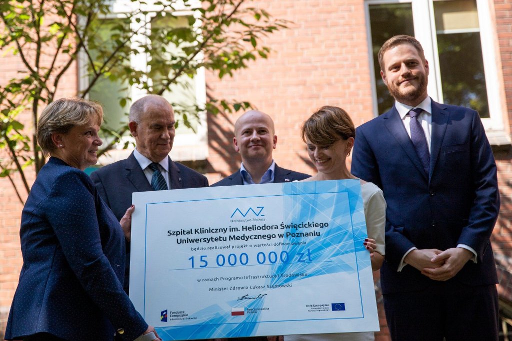 Wiceminister zdrowia Janusz Cieszyński i dyrektor Krystyna Mackiewicz podpisali dziś umowę na budowę Szpitalnego Oddziału Ratunkowego o wartości ponad 105 mln zł. W wydarzeniu udział wzięli również: minister przedsiębiorczości i technologii Jadwiga Emilewicz, wicewojewoda wielkopolski Aneta Niestrawska, wiceprzewodniczący sejmowej komisji zdrowia, poseł Tadeusz Dziuba oraz poseł Bartłomiej Wróblewski.