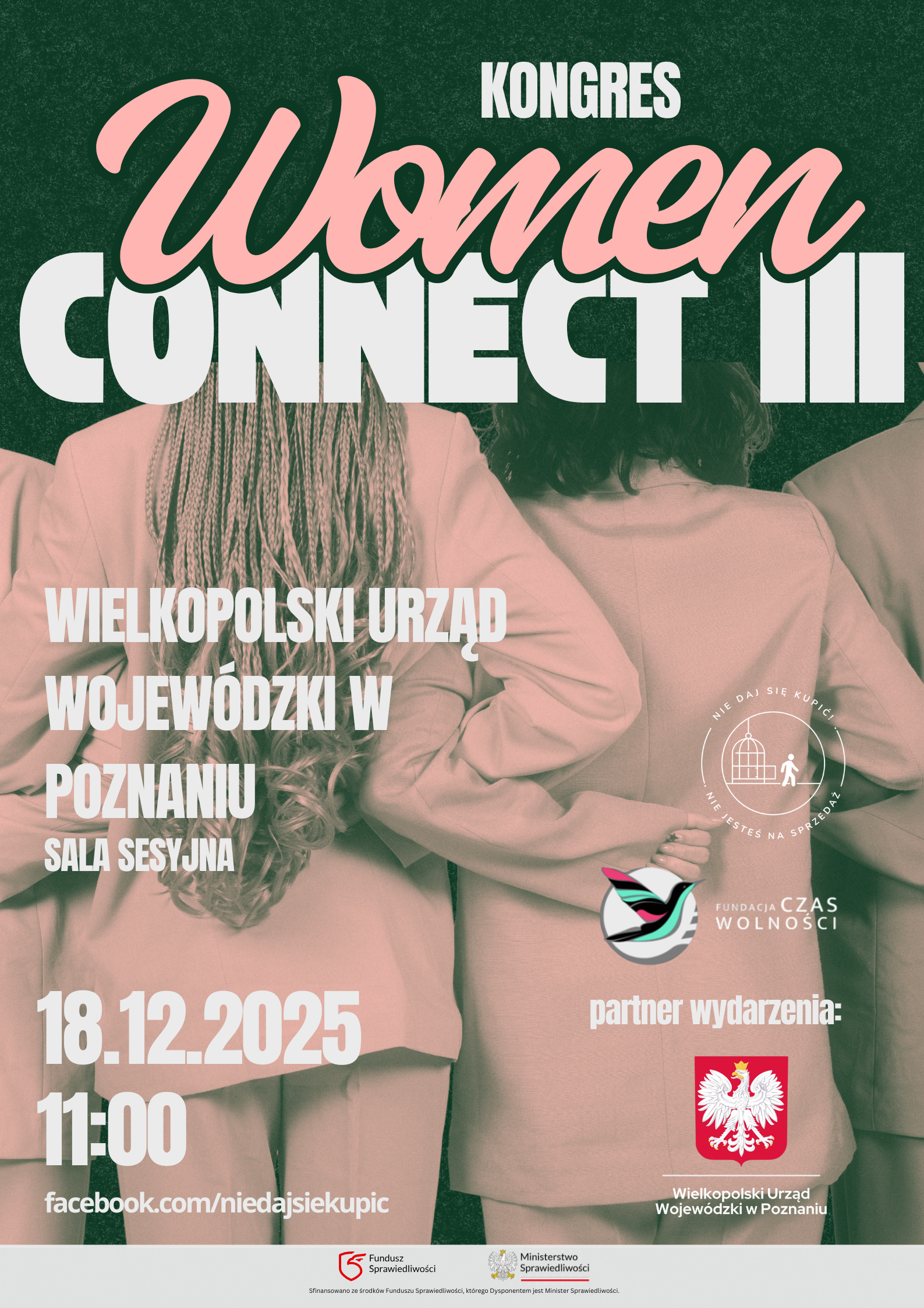 Zapraszamy 18 grudnia 2025 roku w godzinach 10.00–14.00. Aby wziąć udział w Kongresie należy wypełnić formularz zgłoszeniowy: https://www.poznan.uw.gov.pl/kongres-kobiet-women-connect-iii