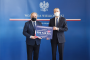 Wojewoda wielkopolski Michał Zieliński wręczył dziś okolicznościowe czeki dla domów pomocy społecznej. Środki pochodzą z Funduszu Przeciwdziałania COVID-19 na 2021 rok i zostały przyznane przez Ministerstwo Rodziny i Polityki Społecznej. W spotkaniu uczestniczył także poseł na Sejm Jan Mosiński.
