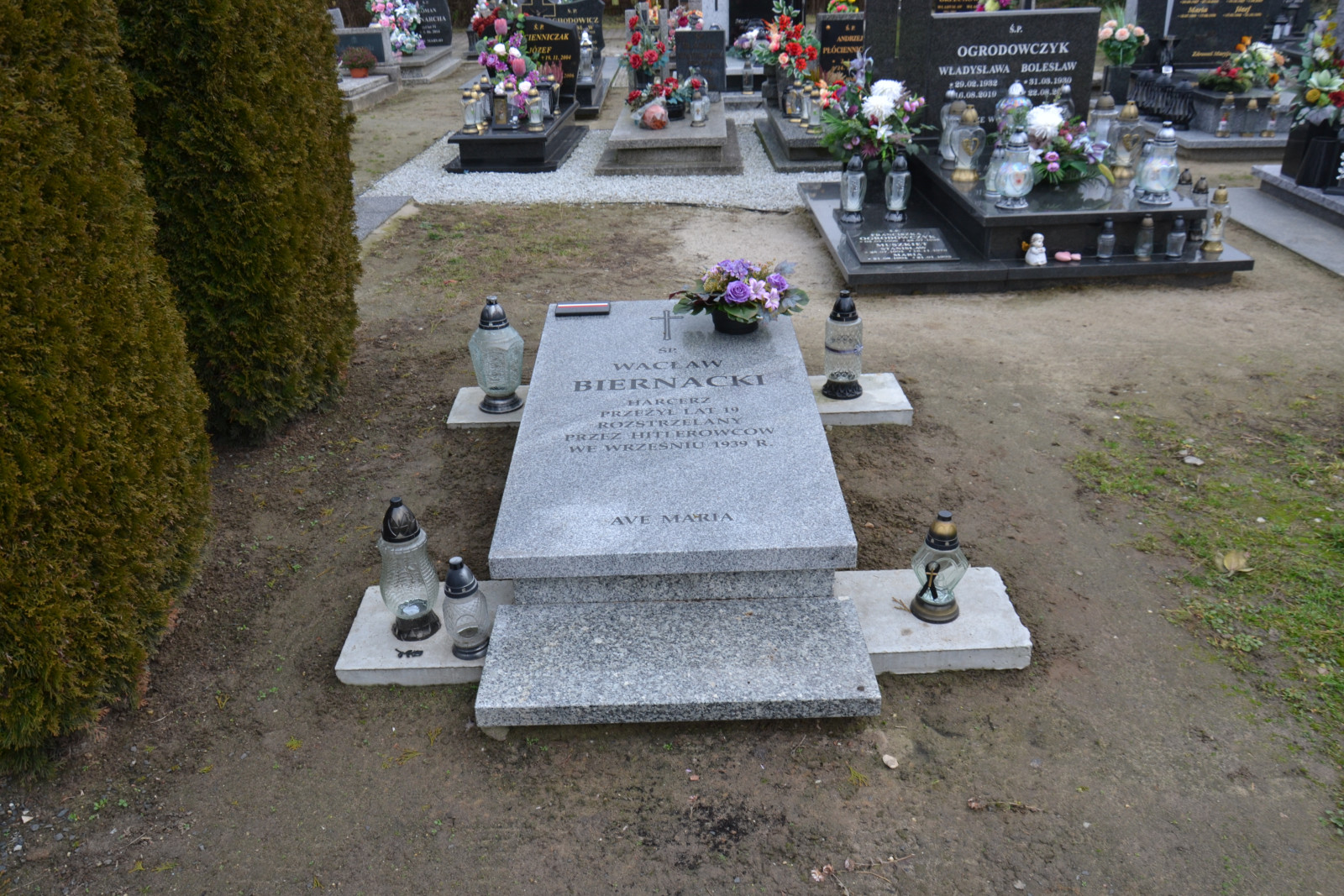 zdjęcie grobu Wacława Biernackiego - ofiary terroru niemieckiego. Miłosław