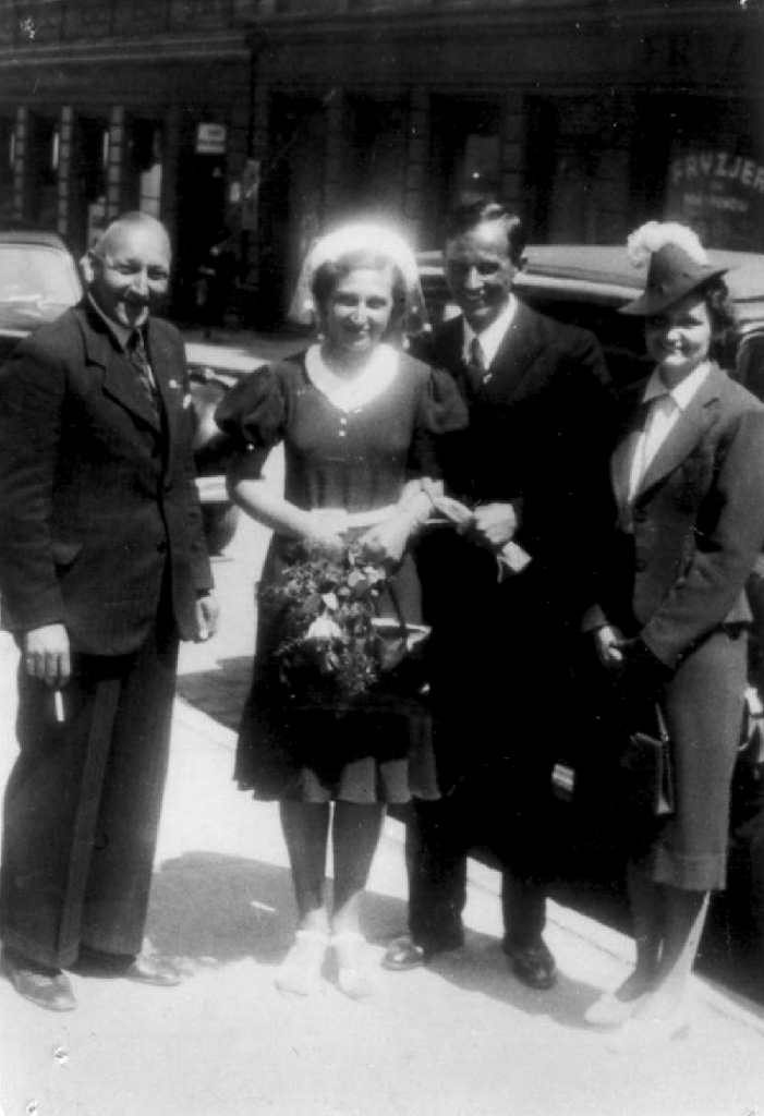 Poznań 10 czerwca 1939 r., tuż po ślubie cywilnym. Od lewej: Stanisław Koperski (świadek), Janina i Mieczysław Lewandowski, Irena Haszkiewicz (świadek) - fot. w zbiorach Muzeum Powstańców Wielkopolskich im. gen. Józefa Dowbora Muśnickiego w Lusowie