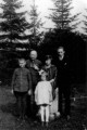 Rodzina Dowbor Muśnickich w Batorowie w parku na tle świerków. Generał Józef Dowbor Muśnicki z dziećmi. Od lewej: Olgierd, Generał, Janina, Giedymin i Agnieszka (z przodu) - fot. w zbiorach Muzeum Powstańców Wielkopolskich im. gen. Józefa Dowbora Muśnickiego w Lusowie