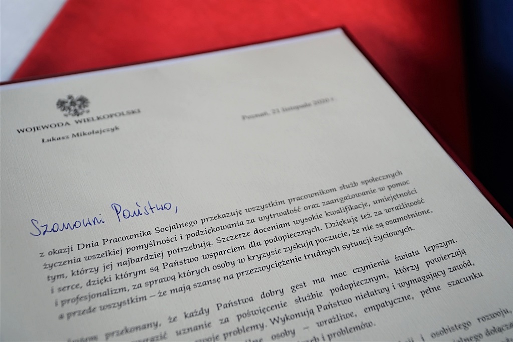 W listopadzie obchodzony jest Dzień Pracownika Socjalnego. Z tej okazji wojewoda wielkopolski Łukasz Mikołajczyk przekazał wszystkim pracownikom służb społecznych życzenia wszelkiej pomyślności i podziękowania za wytrwałość oraz zaangażowanie w pomoc tym, którzy jej najbardziej potrzebują.