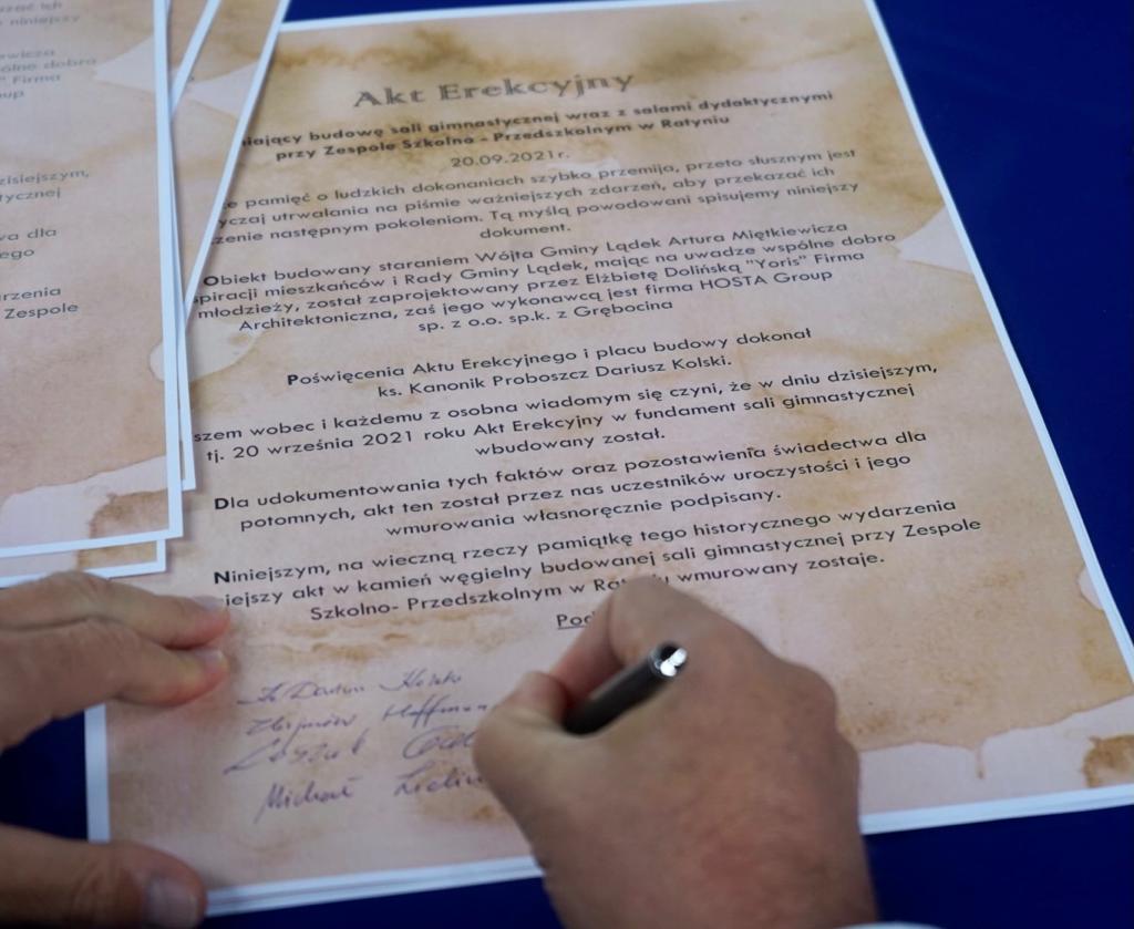 W Ratyniu (pow. słupecki) wojewoda wielkopolski Michał Zieliński wraz z wraz z sekretarzem stanu, zastępcą szefa Kancelarii Prezesa Rady Ministrów Zbigniewem Hoffmannem oraz posłem Leszkiem Galembą wzięli udział w uroczystości wmurowania aktu erekcyjnego pod budowę sali gimnastycznej wraz z salami dydaktycznymi.