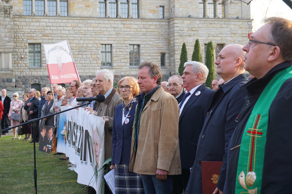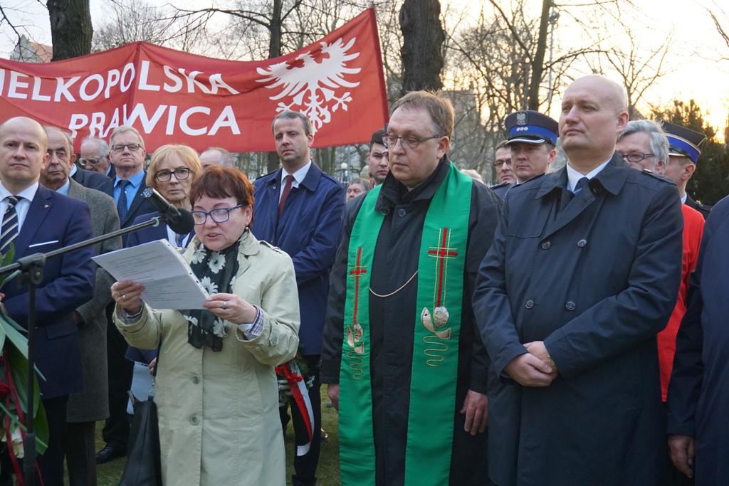 Po mszy uczestnicy przeszli pod pomnik Ofiar Katynia i Sybiru, gdzie odbył się uroczysty Apel Pamięci oraz złożono kwiaty. Wojewoda wielkopolski Zbigniew Hoffmann odczytał list od ministra obrony narodowej Mariusza Błaszczaka. - Pamięć o ofiarach katastrofy smoleńskiej jest fundamentem godności państwa polskiego. Dziś składamy hołd tym, którzy wówczas zginęli - czytał wojewoda.
