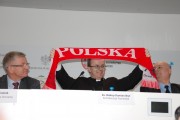 - Obchody organizujemy wspólnie, by każdy mógł cieszyć się z tego jubileuszu - mówił z kolei biskup pomocniczy archidiecezji poznańskiej Damian Bryl. Dla potwierdzenia swych słów przedstawił pamiątkowy szalik z napisem "Gdzie chrzest, tam nadzieja", będący hasłem jubileuszu.