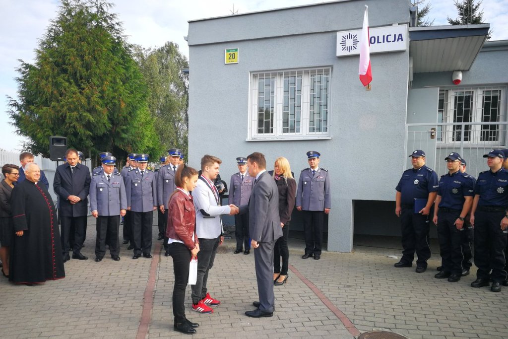 Minister Błaszczak otworzył Posterunek Policji w Rokietnicy. To siódmy posterunek w Wielkopolsce i 54. w kraju, który powstał po 2016 roku. - Będziemy konsekwentnie przywracać poczucie bezpieczeństwa społeczności lokalnej - mówił minister. Wręczył też nagrody Młodego Bohatera Gabrieli i Jakubowi; trzynastolatkowie pomogli osobom rannym w wypadku autobusu.
