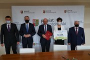 Głos zabiera wojewoda wielkopolskiMoment podpisania umowyMoment przekazania umowyWspólne zdjęcie wojewody z samorządowcami po podpisaniu umowy w ramach programu Maluch Plus