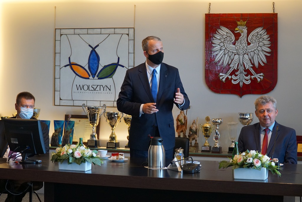 Pierwsza część wizyty odbyła się w Starostwie Powiatowym w Wolsztynie, gdzie wojewoda wielkopolski spotkał się z samorządowcami z powiatu wolsztyńskiego - starostą wolsztyńskim, burmistrzem Wolsztyna, wójtem Przemętu oraz wójtem Siedlca. Wśród zaproszonych gości obecny był także poseł na Sejm RP Marcin Porzucek.