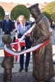 Syn wręczający ryngraf ojcu, który przypina szablę i przygotowuje się do wyjścia do powstania - taką formę ma pomnik Powstańców Wielkopolskich odsłonięty w poniedziałek w Pleszewie. Autorem projektu jest artysta rzeźbiarz Grzegorz Godawa. W imieniu wojewody wielkopolskiego Zbigniewa Hoffmanna kwiaty przy rzeźbie złożyła Anna Zarębska - kierownik delegatury Wielkopolskiego Urzędu Wojewódzkiego w Kaliszu.